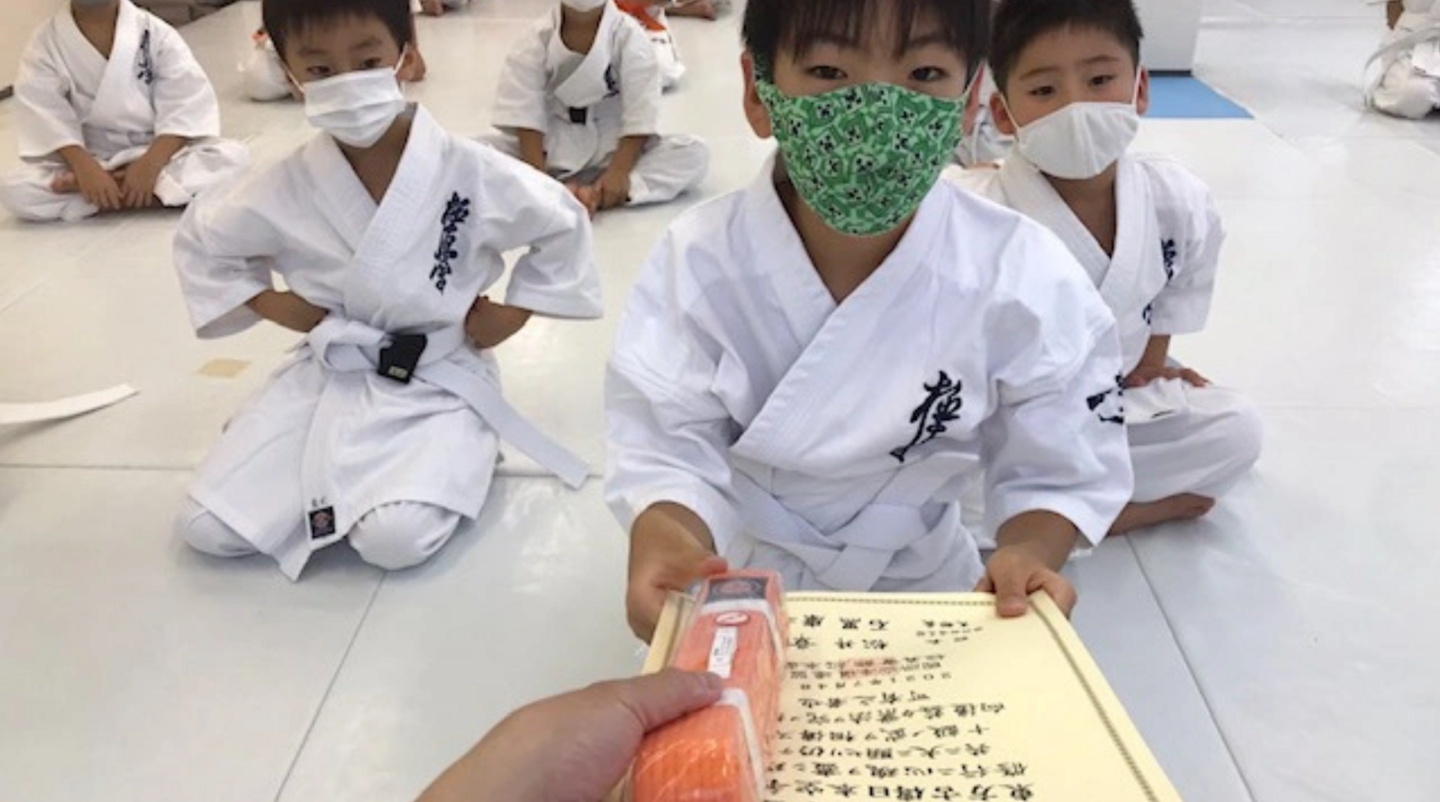 極真空手において、そのモチベーションを上げられるのは、何といっても昇級・昇段です。最初は白帯、オレンジ帯、青帯、黄帯、緑帯、茶帯そして黒帯となります。それぞれの稽古参加、稽古期間をおいて当支部にて審査を行います。合格すれば本部より認定状と帯が各々に渡されます。この時の気持ちは、生涯忘れ得ぬ貴重な経験となっていくでしょう。ぜひ、挑んでみてください。